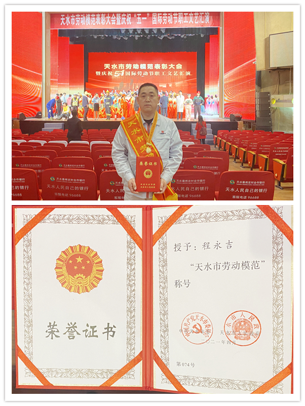 “五一”國際勞動(dòng)節(jié)來臨之際,4月28日,天水市委、市政府隆重召開天水市勞動(dòng)模范表彰大會(huì),表彰近五年來天水市各行各業(yè)涌現(xiàn)出來的勞動(dòng)模范。天水合金機(jī)加車間數(shù)控班組程永吉被授予“天水市勞動(dòng)模范”稱號(hào)。
